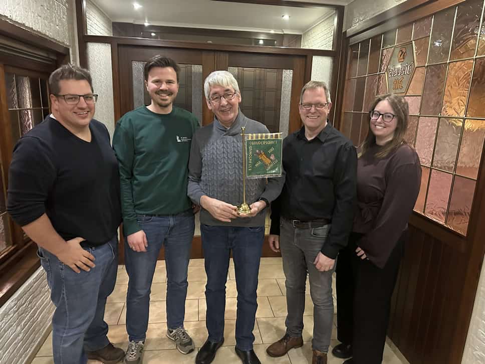 Zu einer bewegenden Ehrung kam es bei der Hauptversammlung der Sankt Antonius-Schützenbruderschaft Hartefeld im Saal der „Dorfschmiede“. Nachdem Karl-Heinz (genannt: „Charly“) Vermöhlen nach 46 Jahren als Kirchenfähnrich seinen Rücktritt erklärt hatte, ehrte ihn die Bruderschaft mit einer originalgetreuen und handwerklich angefertigten Nachbildung „seiner“ Kirchenfahne. Zur Ehrung erhoben sich die Vereinsmitglieder spontan von ihren Plätzen.