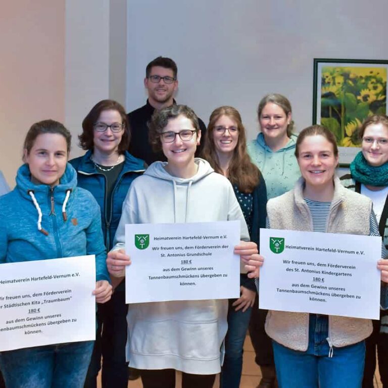 Die Vertreterinnen der Fördervereine beider Hartefelder Kitas und der Grundschule St. Antonius bedankten sich im Pfarrheim beim Vorstand…