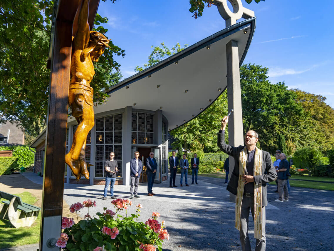 Das erste Lob für das beeindruckende Ergebnis heimsten Bürgermeister Sven Kaiser und die Verantwortlichen der Gelderner Baugesellschaft, Geschäftsführer Thomas Mutz und der Projektverantwortliche Jürgen Hüsken, direkt von den Vertretern der Geistlichkeit ein. „Der Umgang mit den Toten zeigt die Wertschätzung des Lebens. Ich bin sehr dankbar, dass die Stadt Geldern bei ihren zahlreichen Sanierungsprojekten auch die Friedhöfe und Friedhofskapellen nicht vergisst“, erklärte Pfarrer Arndt Thielen. Dem pflichtete Pfarrer Ralf Streppel bei und betonte: „Eine Trauerhalle ist auch ein Ort der Gemeinschaft, denn der Tod gehört zum Leben. Der Ort, um Abschied zu nehmen, hat sich hier in Hartefeld sehr positiv verändert.“