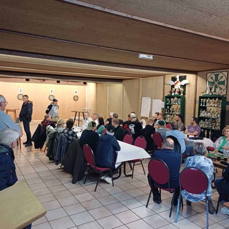 Beste Stimmung beim „Ersten Hartefelder Hobby-Dartturnier“: Der Schießstand der Sankt Antonius Bruderschaft, auf dem sonst in völliger Ruhe…
