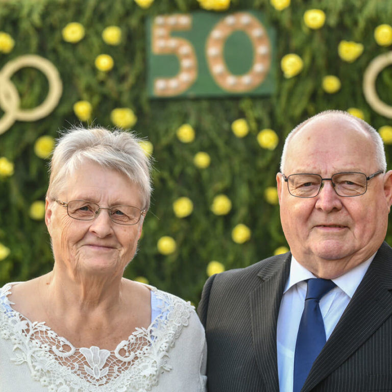Bauen gemeinsam mit ihren Freunden von den „Fusionisten“ schon einen Karnevalswagen für den Hartefelder Rosenmontagszug: Die Goldhochzeiter Hildegard…